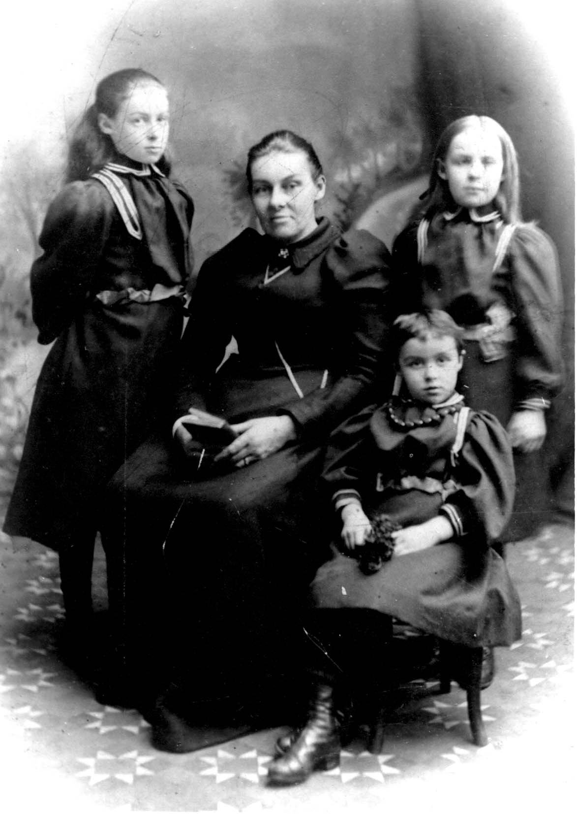 This photograph includes two of my direct female ancestors: Catherine (Kit) McCorkindale is the young girl on the left and her mother is Annie Sim McCorkindale. The photo will have been taken in Glasgow circa 1895. Annie Sim came from the parish of Bothkennar in Stirlingshire where her family had lived for centuries. She died in Brisbane, Australia.