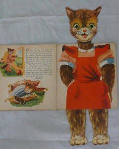 A birthday or Christmas without a book would definitely have been a disappointment. Remember those compilation books: the Girls Own Annual and the like which were around a lot “back when”? I still have some of my old books from childhood to share with my grandchildren. There were also quite a few books which had a fold-out element, like this one called Kittikins Capers.