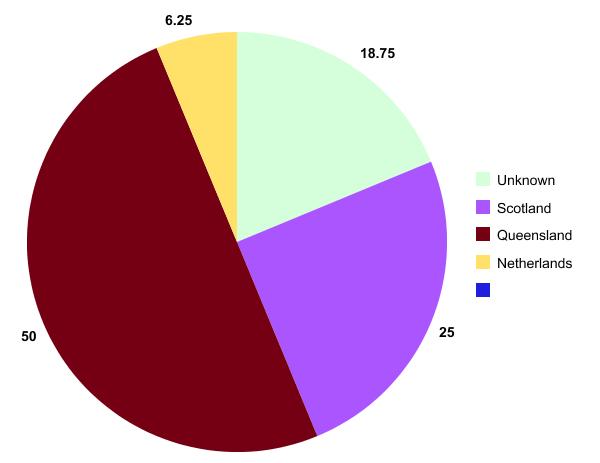 For a bit of light relief I thought I’d bake a birth pie for my great-great grandparents and their place of origin. This involves a little creative licence as I still have no information on the county of origin of my Sherry ancestor or anything really for my Callaghan g-g-grandparents but I think I’m fairly confident that they were born in Ireland. So here’s my slices of heritage pie. Sorry I didn’t quite get the colour right for my Queensland marriages -it should be maroon! The residual deaths overseas reflects the fact that two branches of my famillies were late arrivals (1883 and 1910). No wonder I identify so readily with the Irish and the Scots.