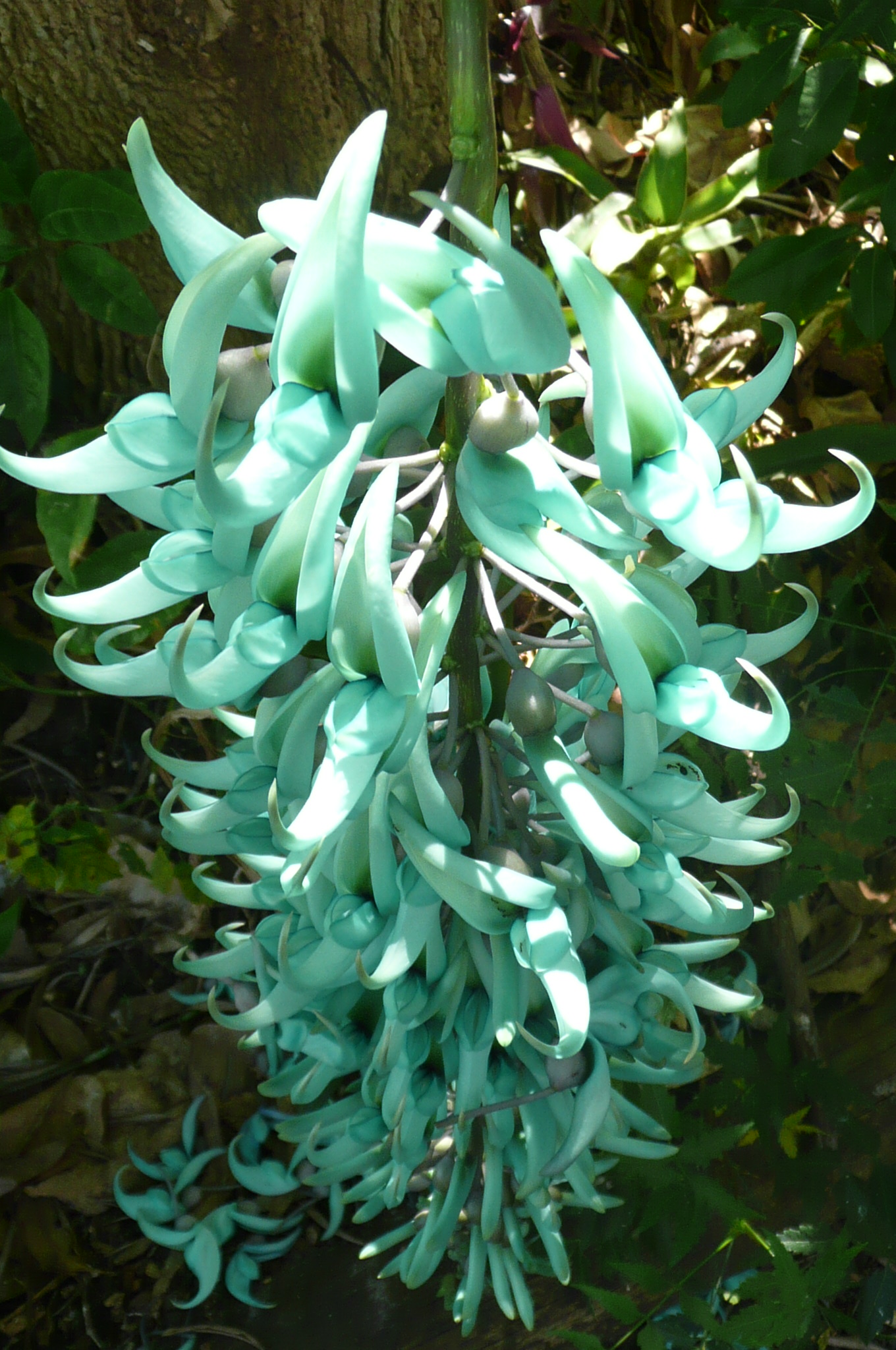 One of the joys of the Top End in the Dry Season is the array of gardens which are open and visiting them is part of our “social” agenda. Unfortunately due to our interstate trip we’ve missed a few but last week’s garden and this week’s have been delightful. I loved the intimacy of last week’s garden with its many rooms, lush foliage, fun mosaics and absolute privacy. This week, the feature plant at today’s garden, Anthill Gardens, was the Jade vine. Apparently the combination of a heavy Wet Season and a chilly spell in the Dry has produced a good flowering season. I thought you might like to see some images of this vine which is native to the Philippines but don’t get too carried away and plant it in your own garden unless you have lots of space. Apparently it has a tendency to take over. This garden (with which I have no connection) is about to be a commercial tourist attraction in the Top End as Tropical Display Gardens.If you’re travelling around it will be worth a look. The front of the property has some fairly spectacular termite mounds too. In fact, if you’re touring the Top End and enjoy gardens, keeping an eye out for the Open Garden information is well worth while for a pleasant outing….it’s unlikely you’d be disappointed.