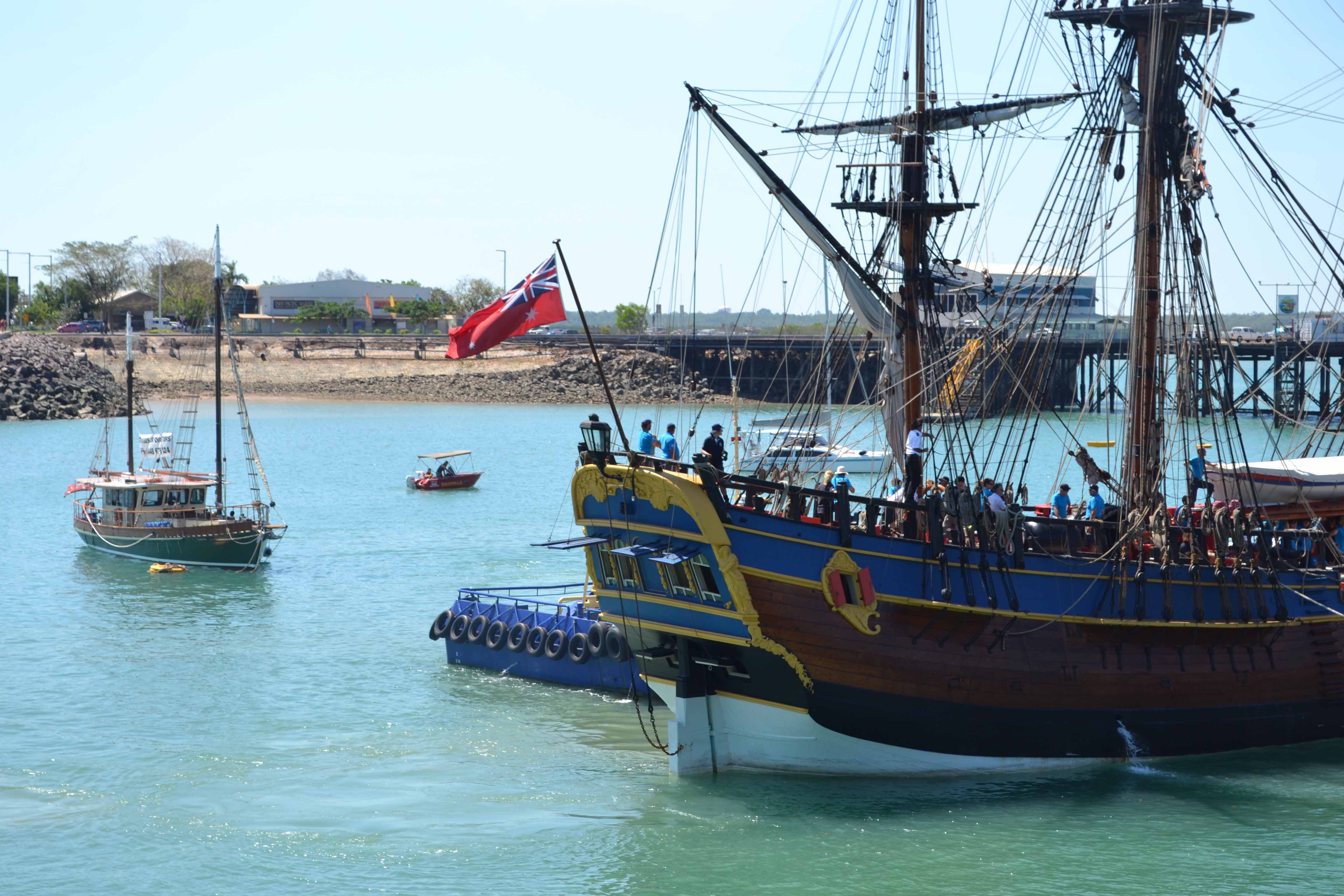 Then today the replica of HMB Endeavour also motored into Darwin harbour. Although we’d been on the lookout for it nearby we didn’t see it under sail at all but it was still exciting to see something so evocative of Australia’s white history. Perhaps less so for our indigenous Australians but an eventful moment nonetheless: I’ll be curious to see what the Tiwi people thought when they saw it off Melville Island. Darwin had anticipated Endeavour would be anchored off Fannie Bay last night and there seemed to be a very large number of “Endeavour picnics” awaiting its arrival. However it still could not be seen when dark fell so it was a pleasure to see it arrive this morning.