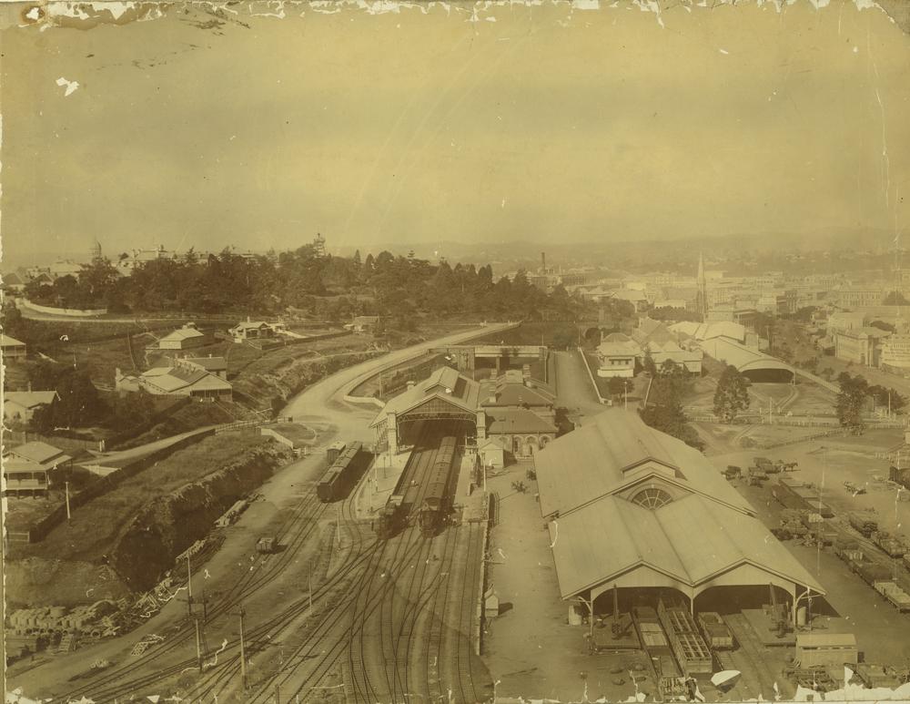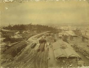 Roma Street railway yards c1897. John Oxley LIbrary Image number: APO-023-0001-0001 Copyright expired.