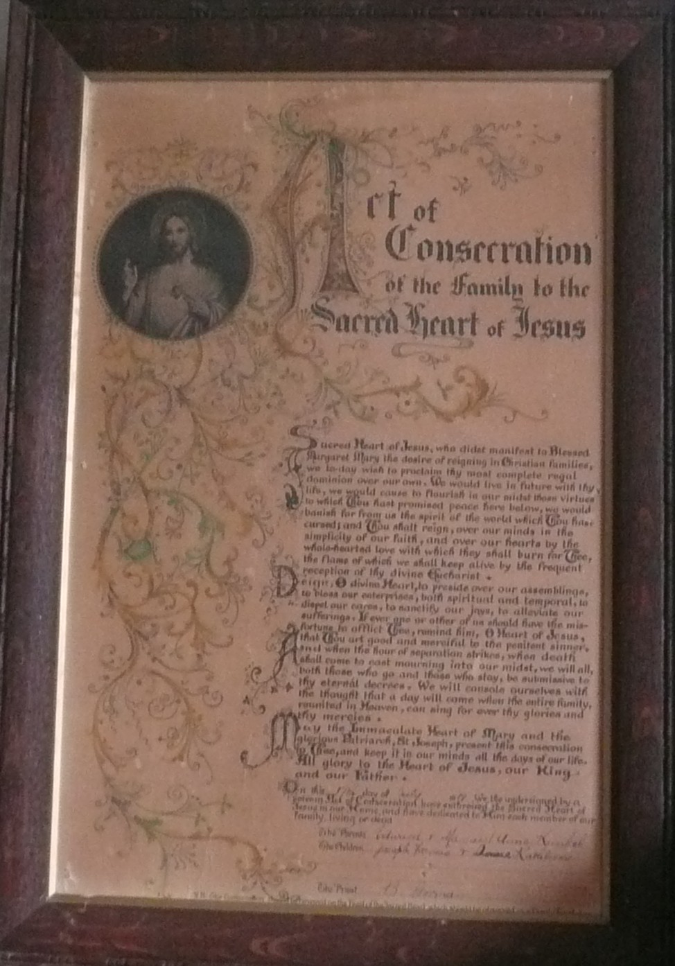 I’ve recently been fortunate enough to be thought of when there was a clean-up of surplus holdings and in this way obtained a 93 year-old church-based certificate which had once been in my ancestor’s original property. My great-great grandmother’s youngest son had the house blessed when his family took ownership after she died in 1919. Without my link to the archive this would never have come to light.