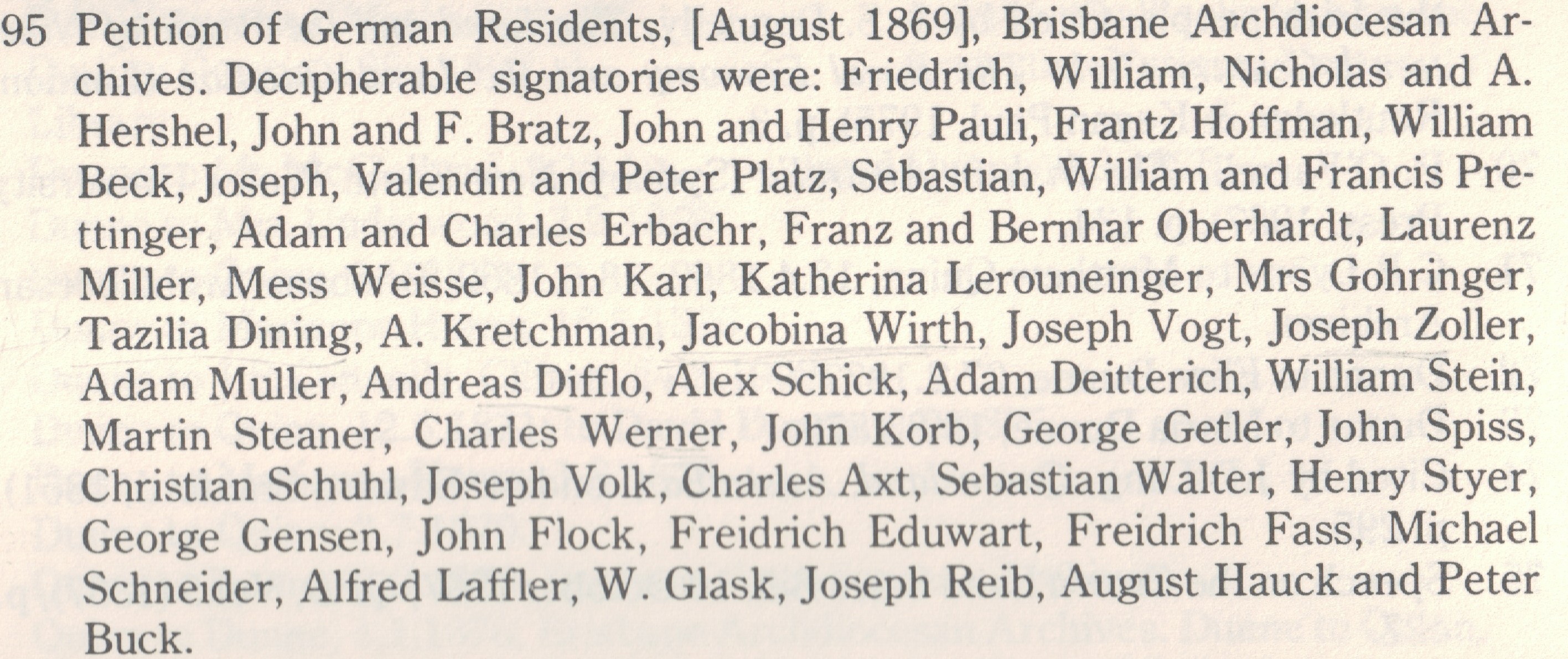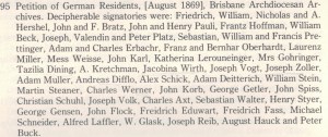 Even biographies of senior churchmen can be helpful. One of the most informative church books for my own family was the biography of Robert Dunne, Archbishop of Brisbane. There are countless references to how Dunne interacted with his parishioners (which included my Kunkels), his visits to the railway camps and how he viewed them, his encouragement of land purchases etc. It also documents how he got into strife for not providing sufficient pastoral care for his German-speaking Catholics. The petition transcription includes the names of four of “my” Dorfprozelten families, not to mention quite a number of other German Catholics (I’d love to see the original but they have been unable to locate it).