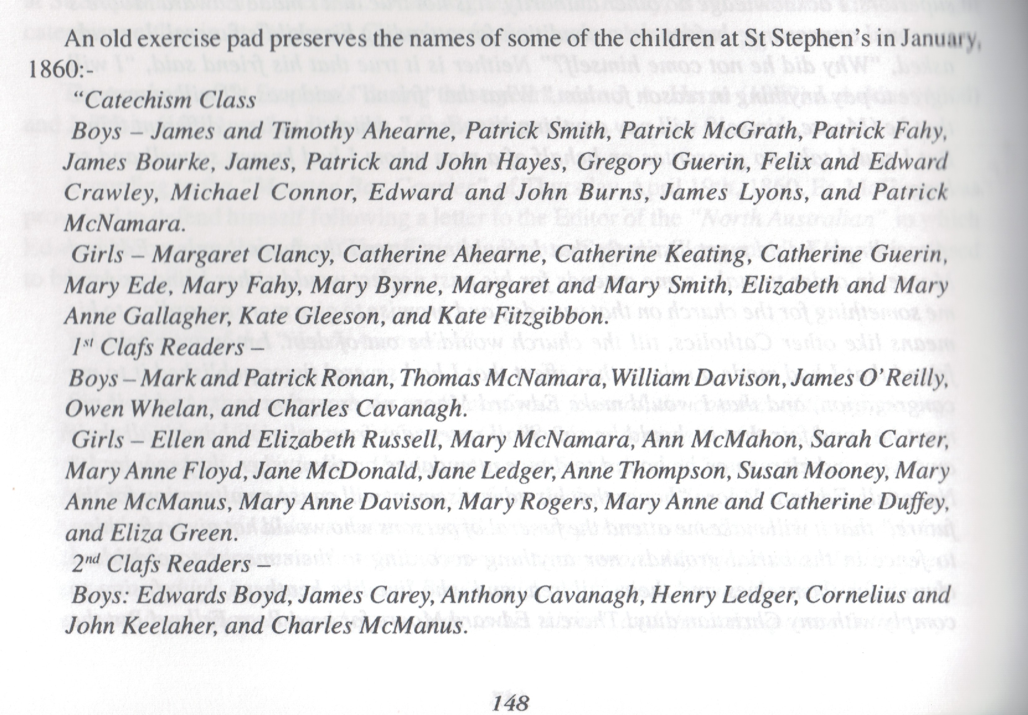 Catechism Class St Stephen's Cathedral Brisbane 1860, Foundations of the Catholic Church in Queensland, op cit, page 148.