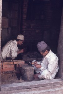Kathmandu craftsmen -tinsmiths or silversmiths (I can't recall) © P Cass 1977.