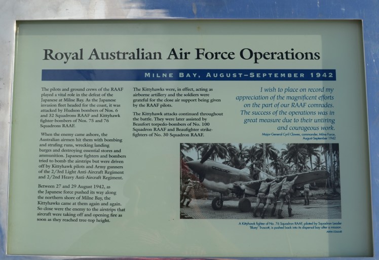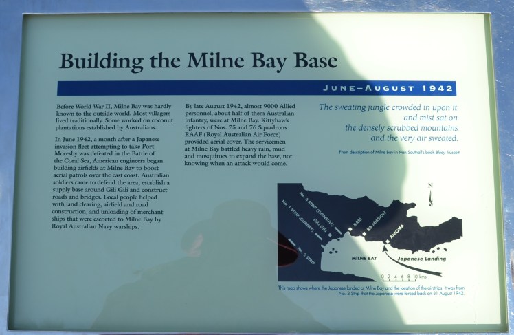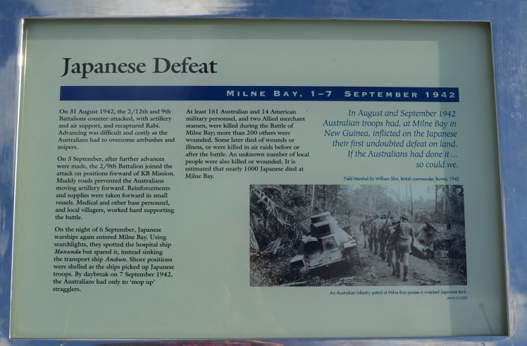 Thanks Pauleen for the blog and photos. There is a detailed Wikipedia page for the Battle at http://en.wikipedia.org/wiki/Battle_of_Milne_Bay The Dept of Veterans Affairs also has a good geographical representation of it at http://kokoda.commemoration.gov.au/milne-bay/japanese-defeat-at-milne-bay.php You can click on each phase and watch the show. We have a Milne Bay Memorial Library and Research Centre in Brisbane. Its Facebook page is at https://www.facebook.com/MilneBayMLARC