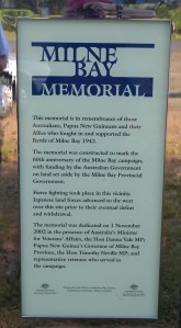 Rather than give you chapter and verse I’m going to show you the images of the War Memorial near Alotau and also the information plaques which tell the story of the battle. You might also be interested in the images on my Tropical Territory blog which show the stained glass windows in the Catholic Church in Alotau, honouring those lost in the battle.