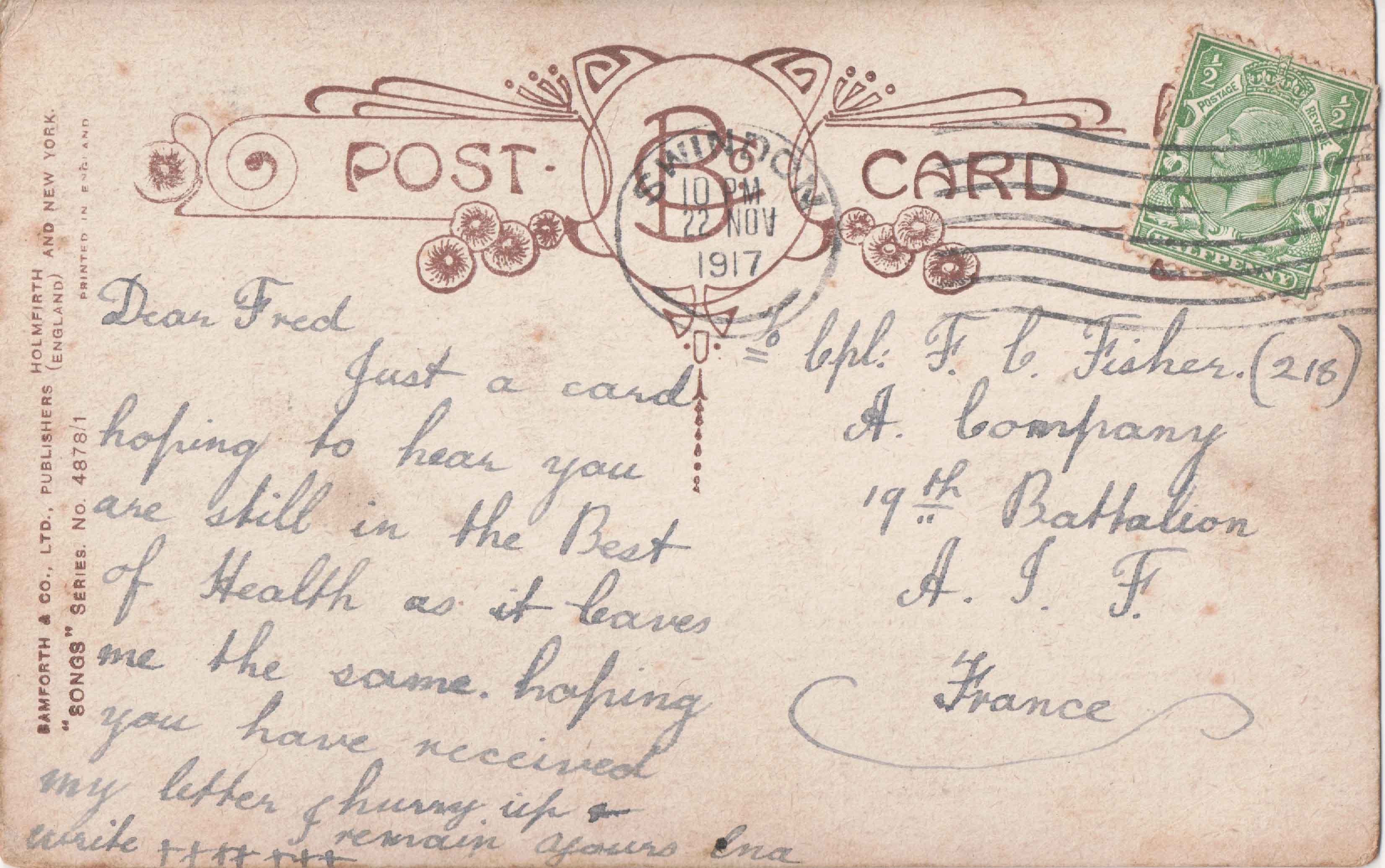 Fred Fisher sent this photo to his brother Les from Etaples in September 1917. At the time Les