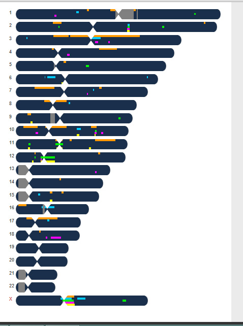 My mother’s X-DNA is a blend of her two X chromosomes, which were inherited from my maternal grandparents ie McSherry and Melvin, so a combination of Irish and Scots genes. A comparison between my mother’s X-DNA and mine will not be identical as it has been jumbled up before being passed on. There should however (I think) be a fair degree of overlap. This will become more clear (I hope!) to me when my mum’s results come back.