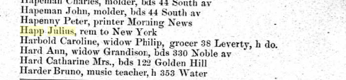 Julius Happ in the Bridgeport City Directories 1884-1923
