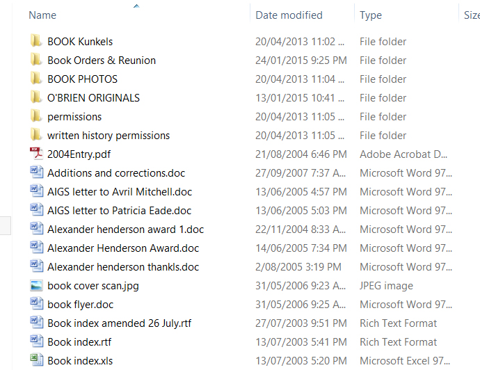 I did manage to keep my Kunkel research documents in a coherent fashion which made it possible to publish the family history and organise two reunions, for which I set up my own database. (some positivity is needed here!) However, even here you can see that some wayward files have escaped from their proper place.