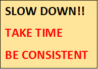 Without a doubt I need to SLOW DOWN, take time, and be consistent.