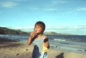 Rach at Ela Beach with ice cream 1977
