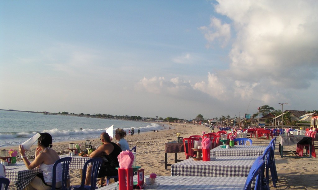 Open air dining at Jimbaran Bay, Bali. Photo P Cass 2005.