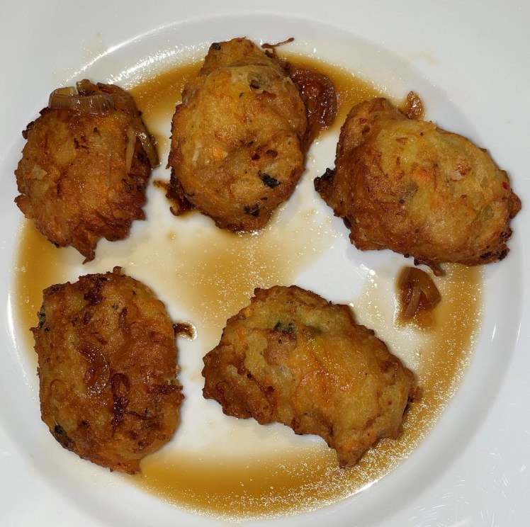 One of our Thai treats for visitors is Yam and Mussel fritters from a Spirit House recipe. It’s always very popular with most of our friends though one family member remains unimpressed. Yams aren’t normally on our food list so we often substitute sweet potato. I have a memory that we had yams cooked in a fire pit when we attended a local colleague’s wedding in Port Moresby in the 1970s.