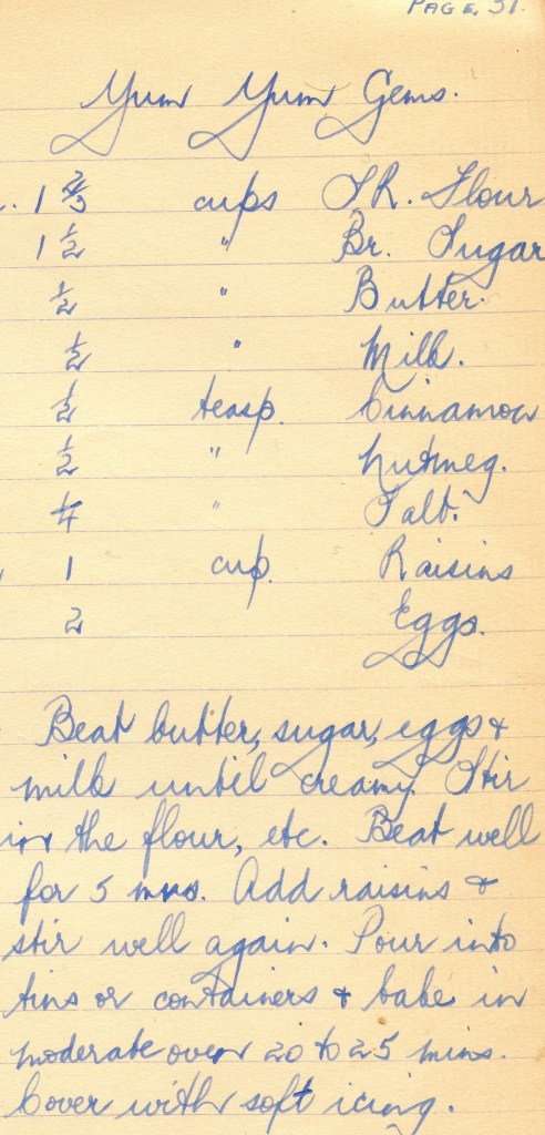Y was silent in the days of my youth except for one of mum’s inevitable biscuit recipes.