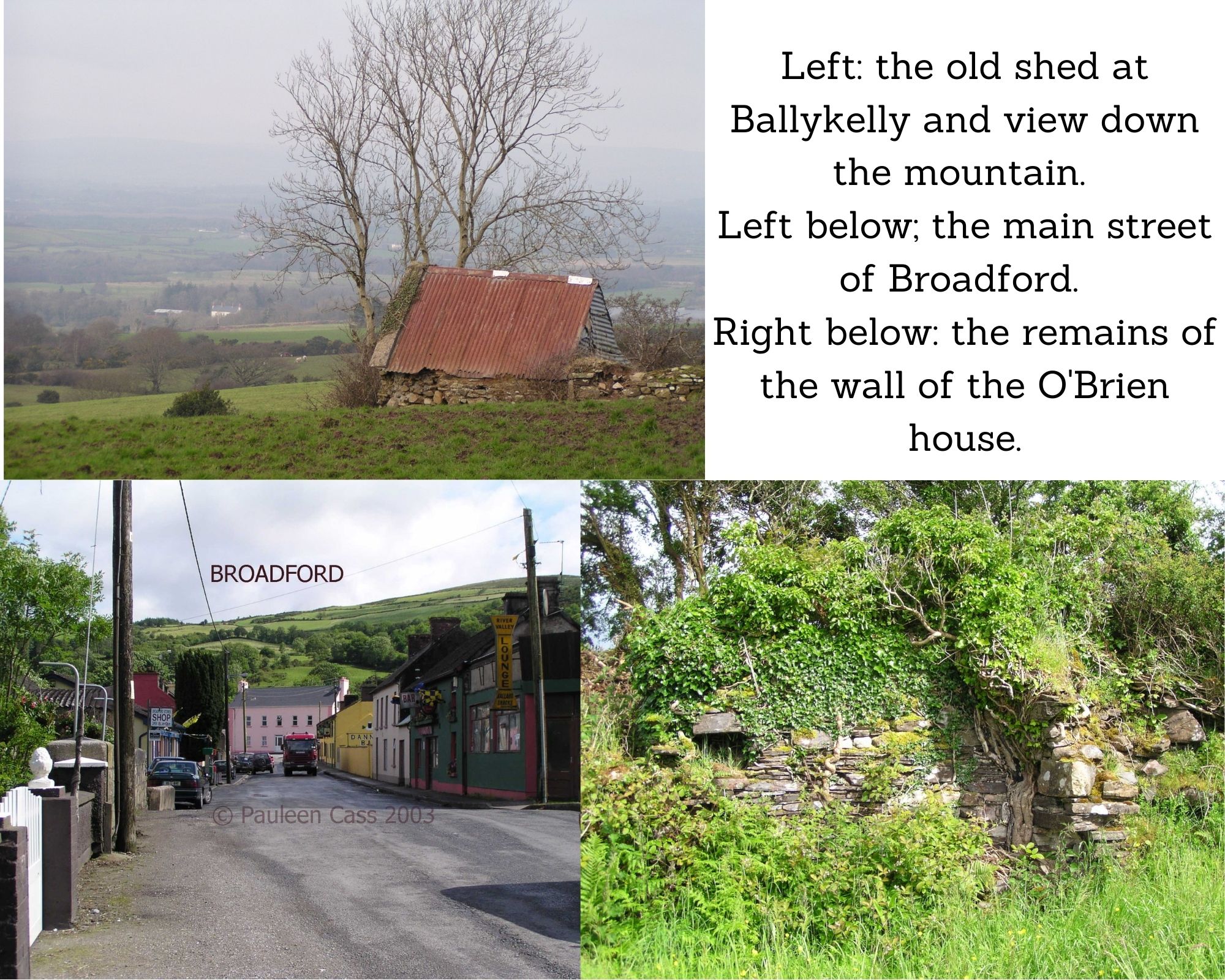 - The parish priest of Broadford dropping us at the door of the relatives who’d inherited the O’Brien farm. Paddy then showed us the original family land at Ballykelly townland amidst much amusement that his mates were wondering why he was in a car with English plates.