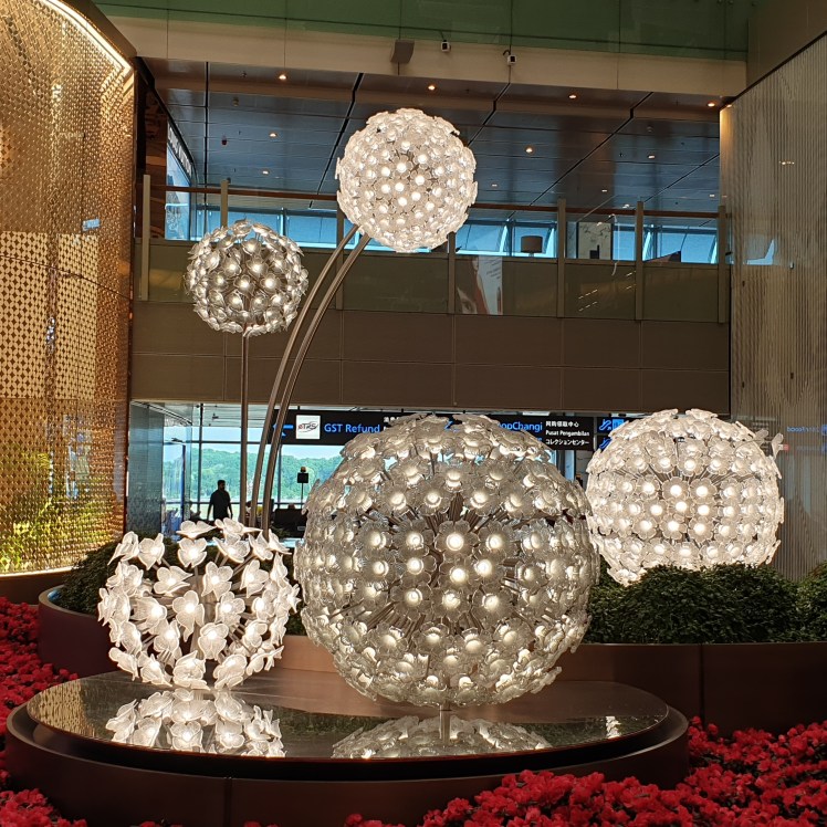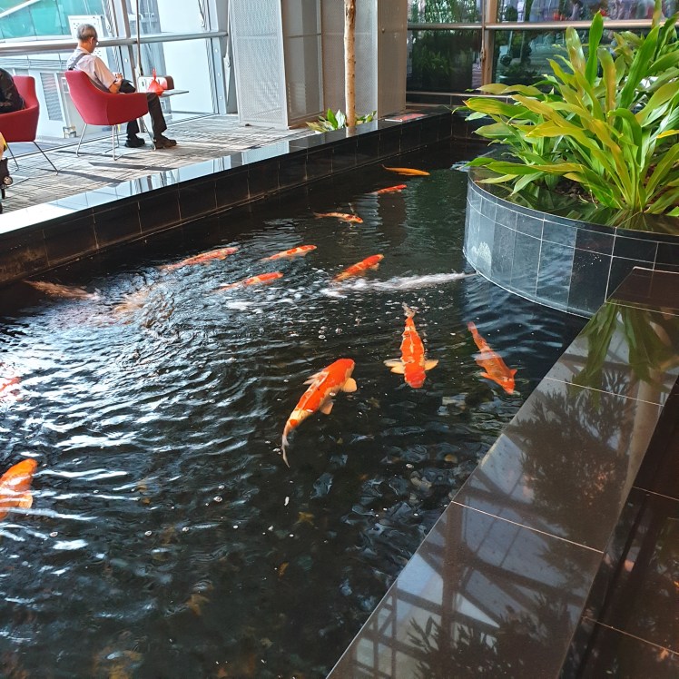 We’ve been through Changi uneventfully quite a few times over the years. If you have to spend time at an airport en route, it’s a great one to while away the hours, because of the soothing settings with pools, fountains and butterflies.