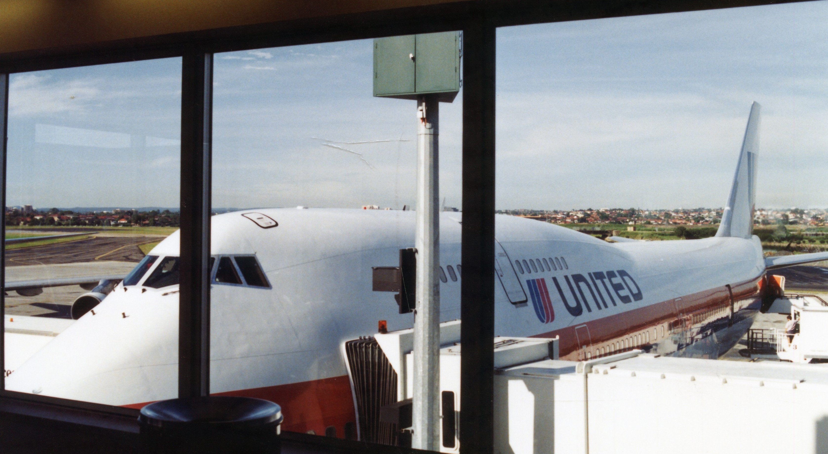 Flying the Friendly Skies with United on the last leg home in 1992.