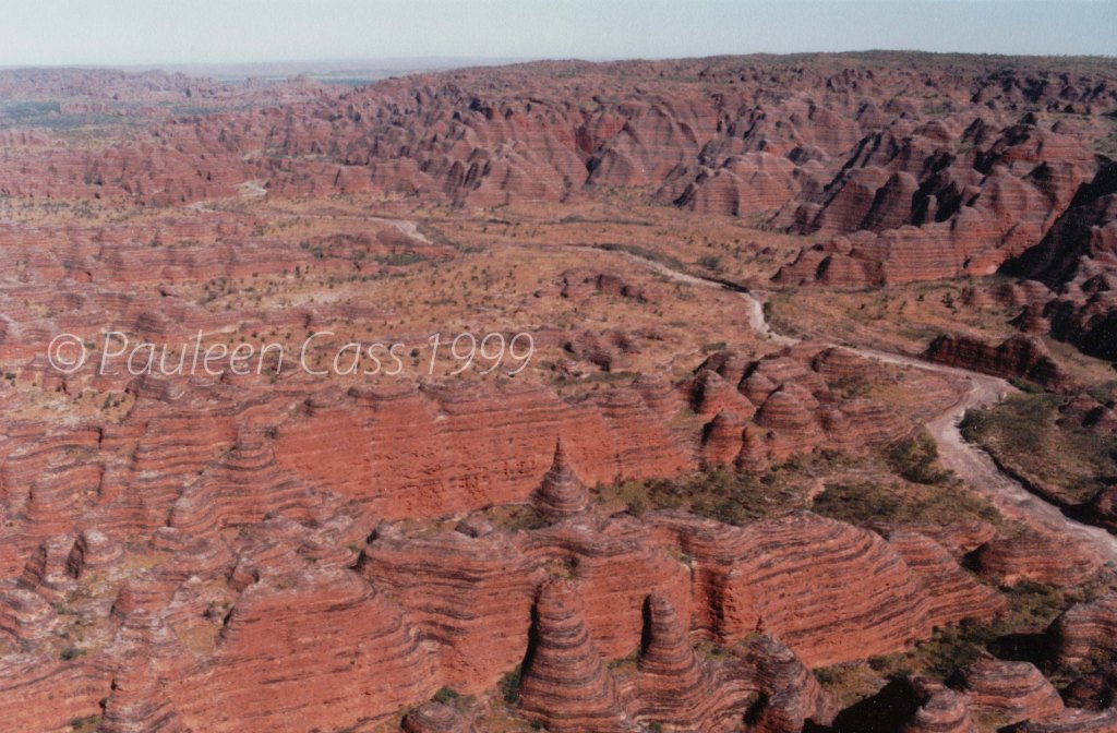 My first helicopter flight was at Purnululu then commonly known as the Bungle Bungles. Middle daughter was on school holidays in June 1999, and I was between jobs, so I happily accepted the offer to go camping with her at the Bungles. It was quite an adventure with none of the facilities that seem to be there now. Driving in was pretty rough and rugged and we saw several camper trailers etc whose axles had fallen foul of the road. Her little Suzuki did the job efficiently. You had to take everything in, food and water, and everything, especially rubbish out with you.